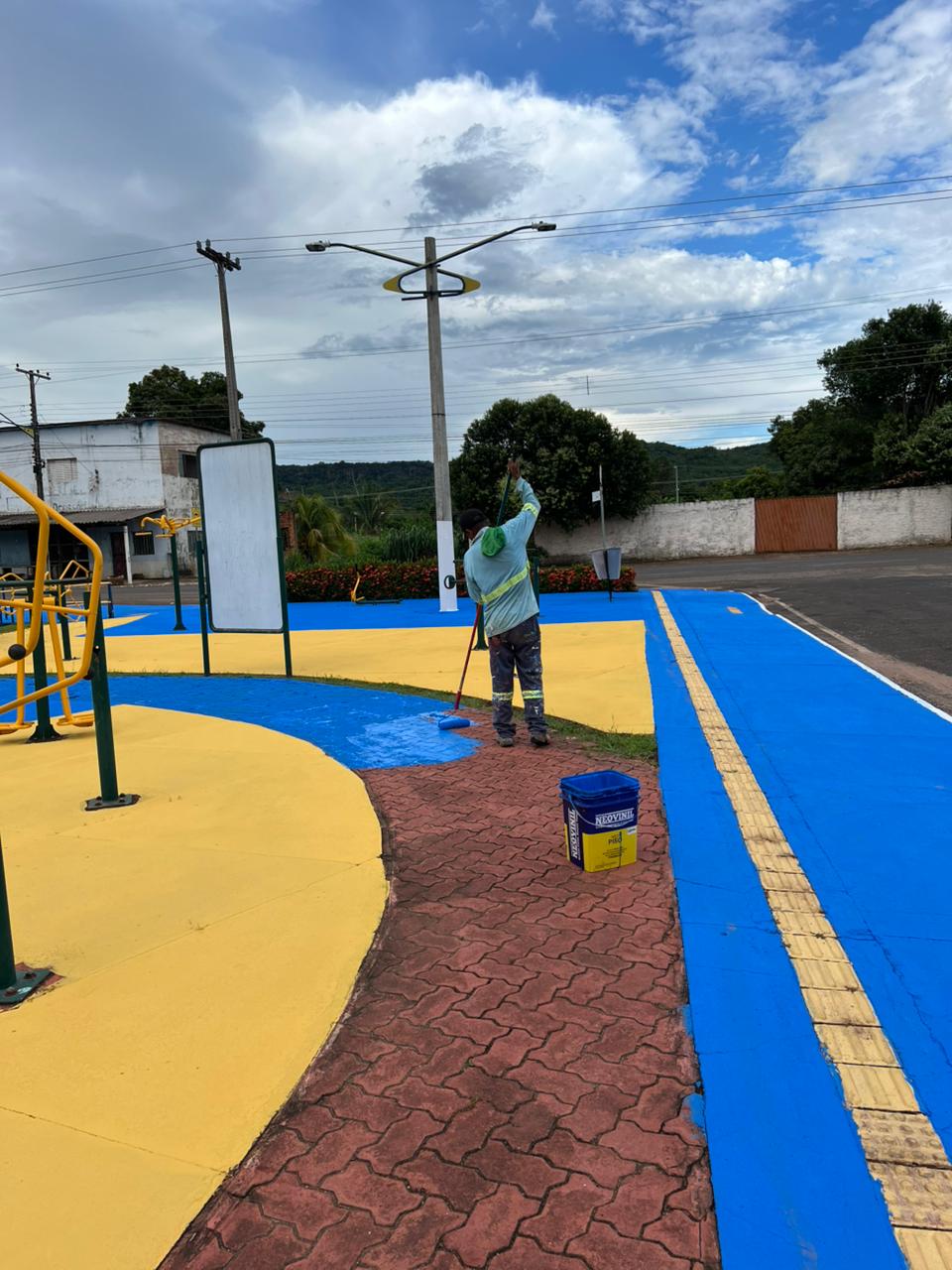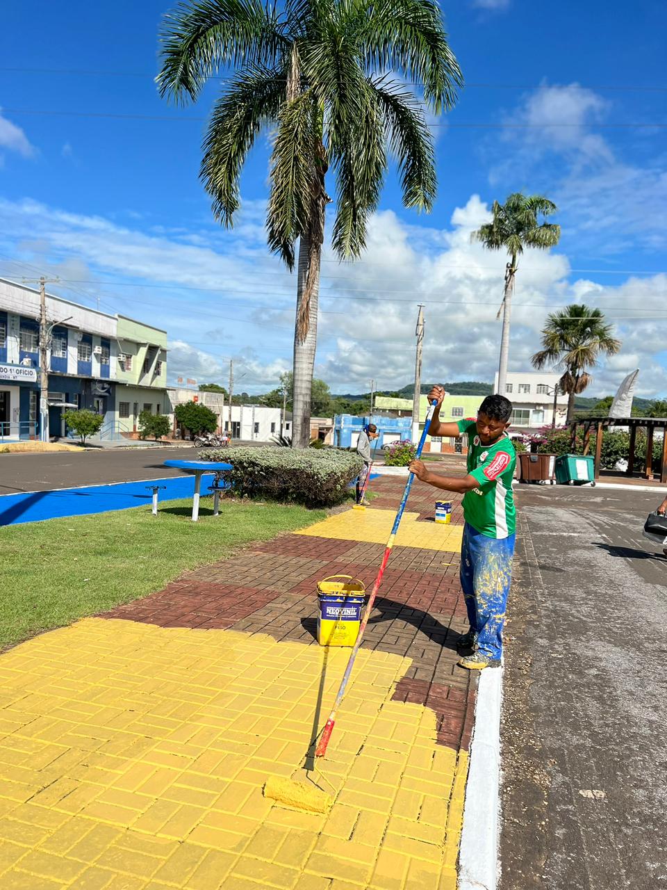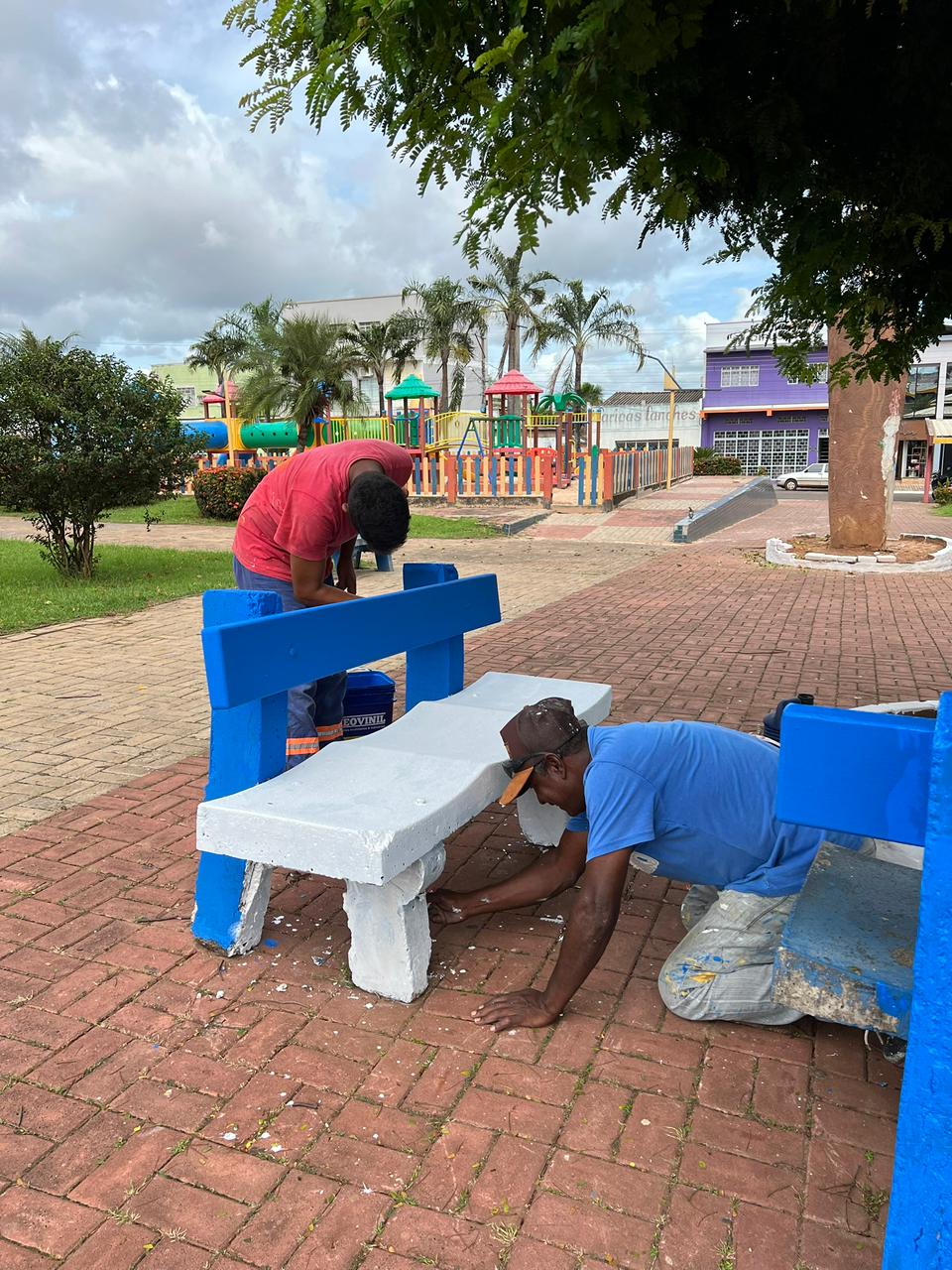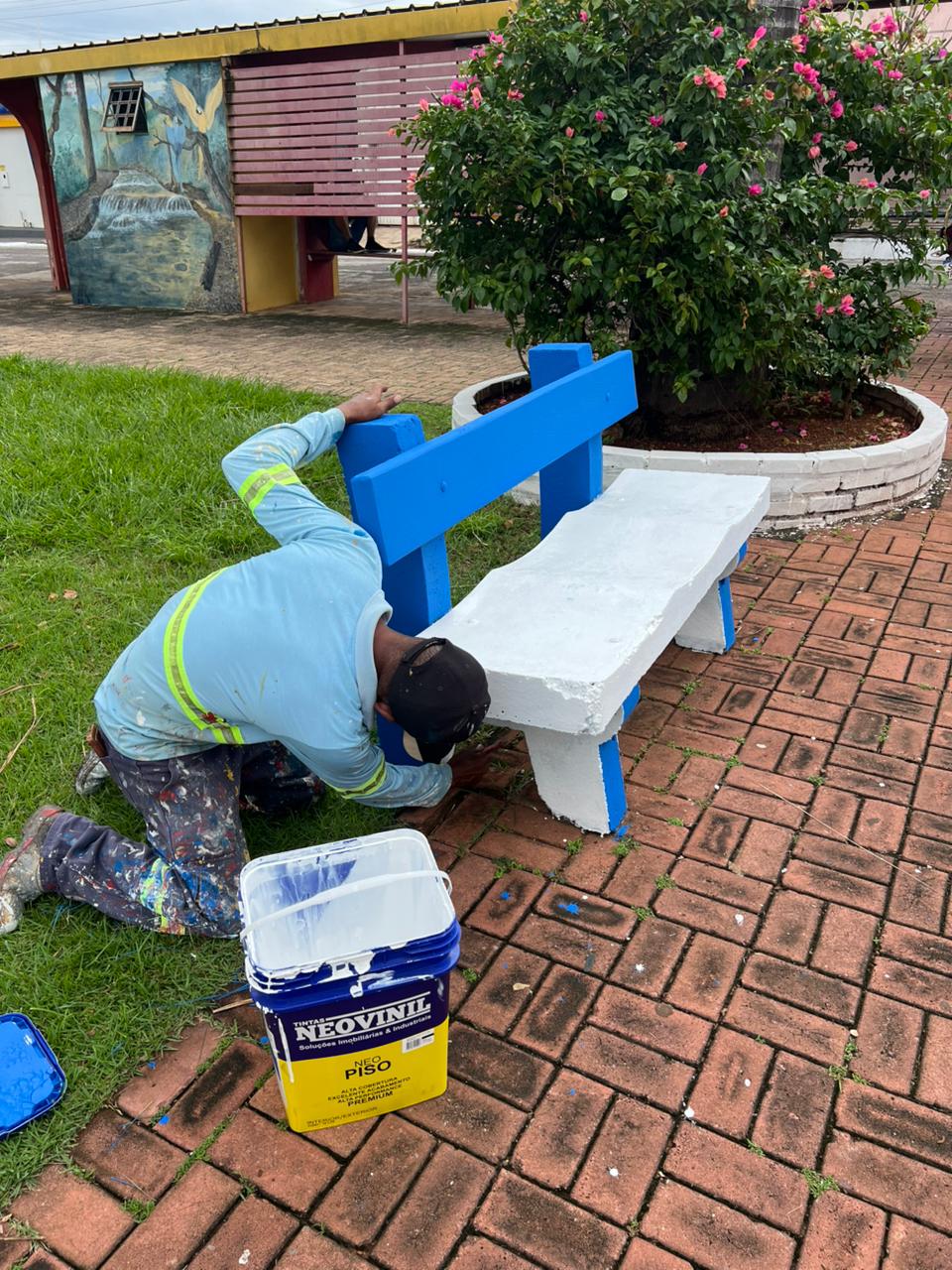 Atualmente, estão sendo realizados serviços de limpeza, pintura e paisagismo na Praça Edgar de Araújo, em Nortelândia.