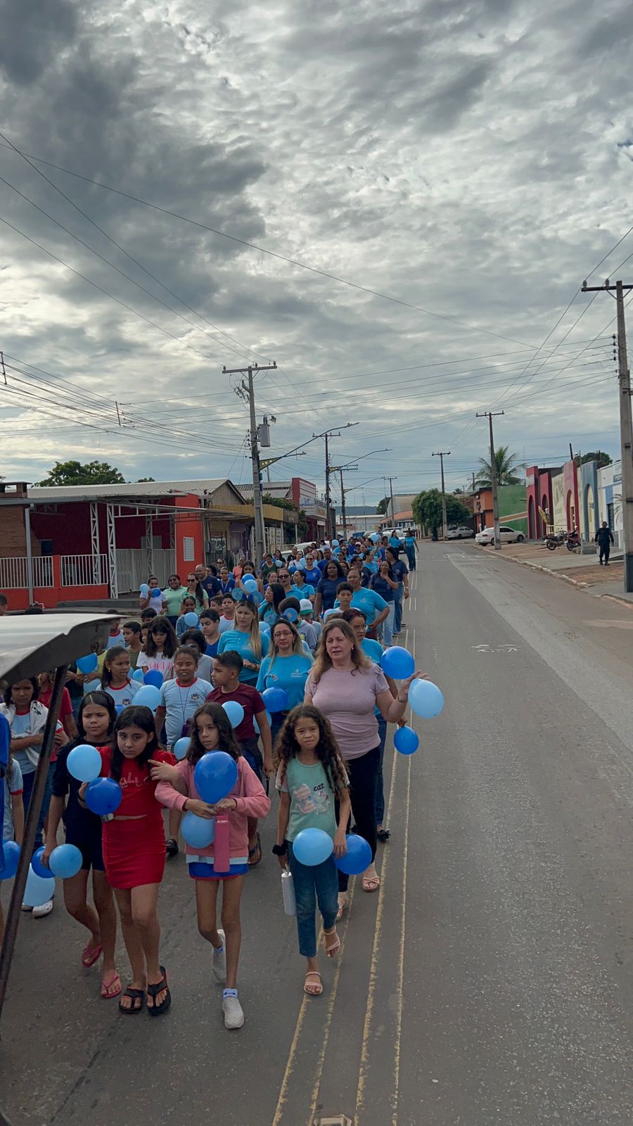 A mobilização teve início em frente à Prefeitura Municipal, reunindo servidores, profissionais da rede, famílias e a comunidade em geral. Em seguida, os participantes seguiram em caminhada até a Praça Edgar de Araújo, promovendo um momento de união, reflexão e conscientização sobre o Transtorno do Espectro Autista (TEA).