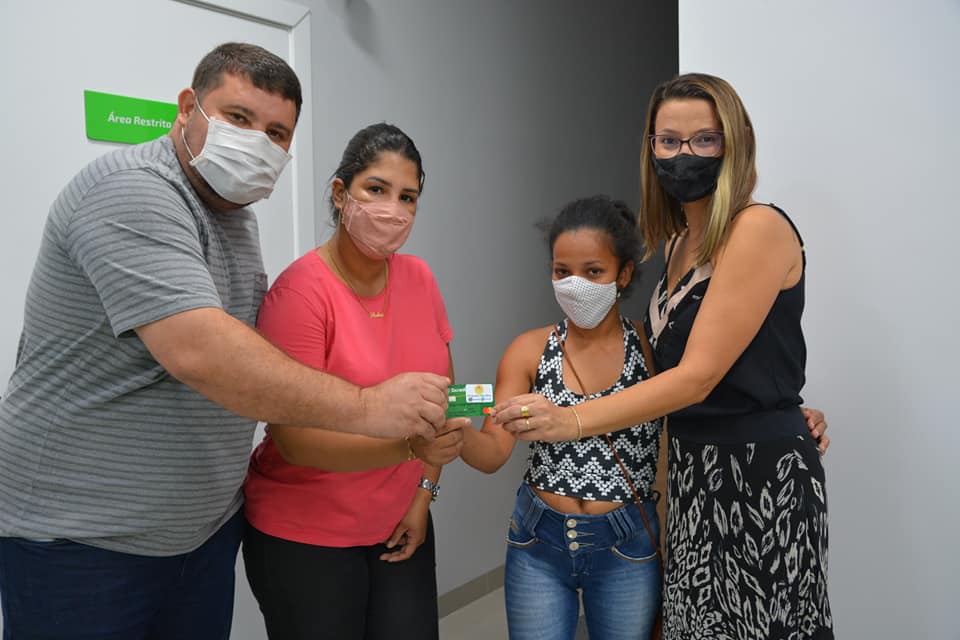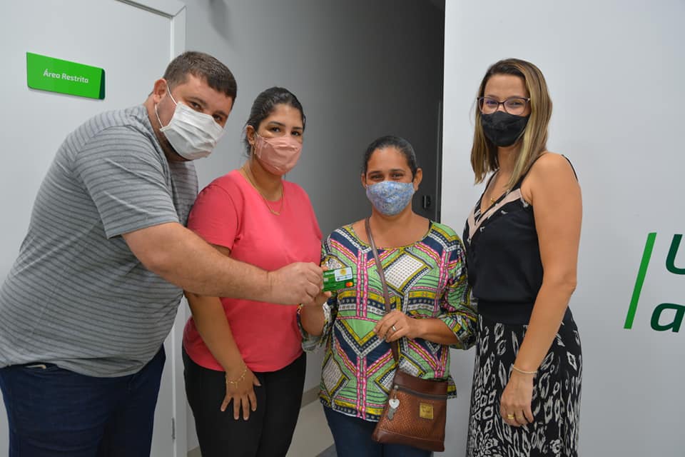 Nesta quarta-feira, a Secretária Municipal de Assistência Social Márcia Fernandes, juntamente com a Coordenadora do Programa Geovana Neris e o Presidente da Câmara de Vereadores Netão Benevides fizeram a entrega dos primeiros cartões do Programa de Renda Municipal VIDA NOVA da Prefeitura de Nortelândia na Cooperativa de Crédito SICREDI.