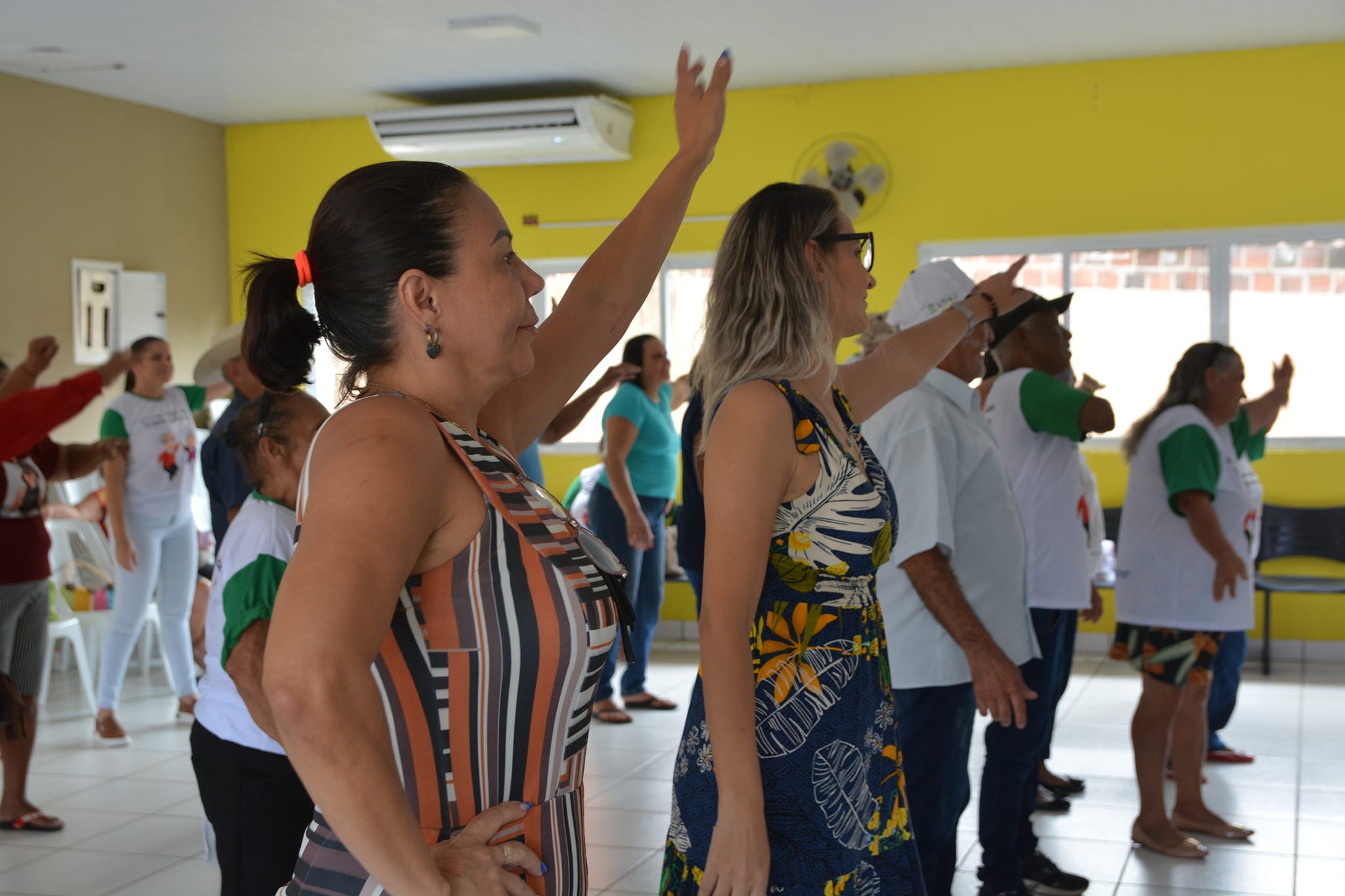 Como de costume o encontro conta com a presença da Saúde Municipal, que realiza banca de pressão para início da programação com os idosos.